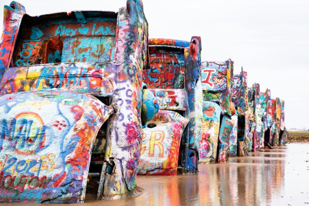As I walk back to the car, I notice the horizon stretching wide and empty. Cadillac Ranch doesn’t try to last forever—it just asks you to leave a little color behind, knowing it will soon be gone. Like the road itself, it’s less about what stays than what keeps moving.